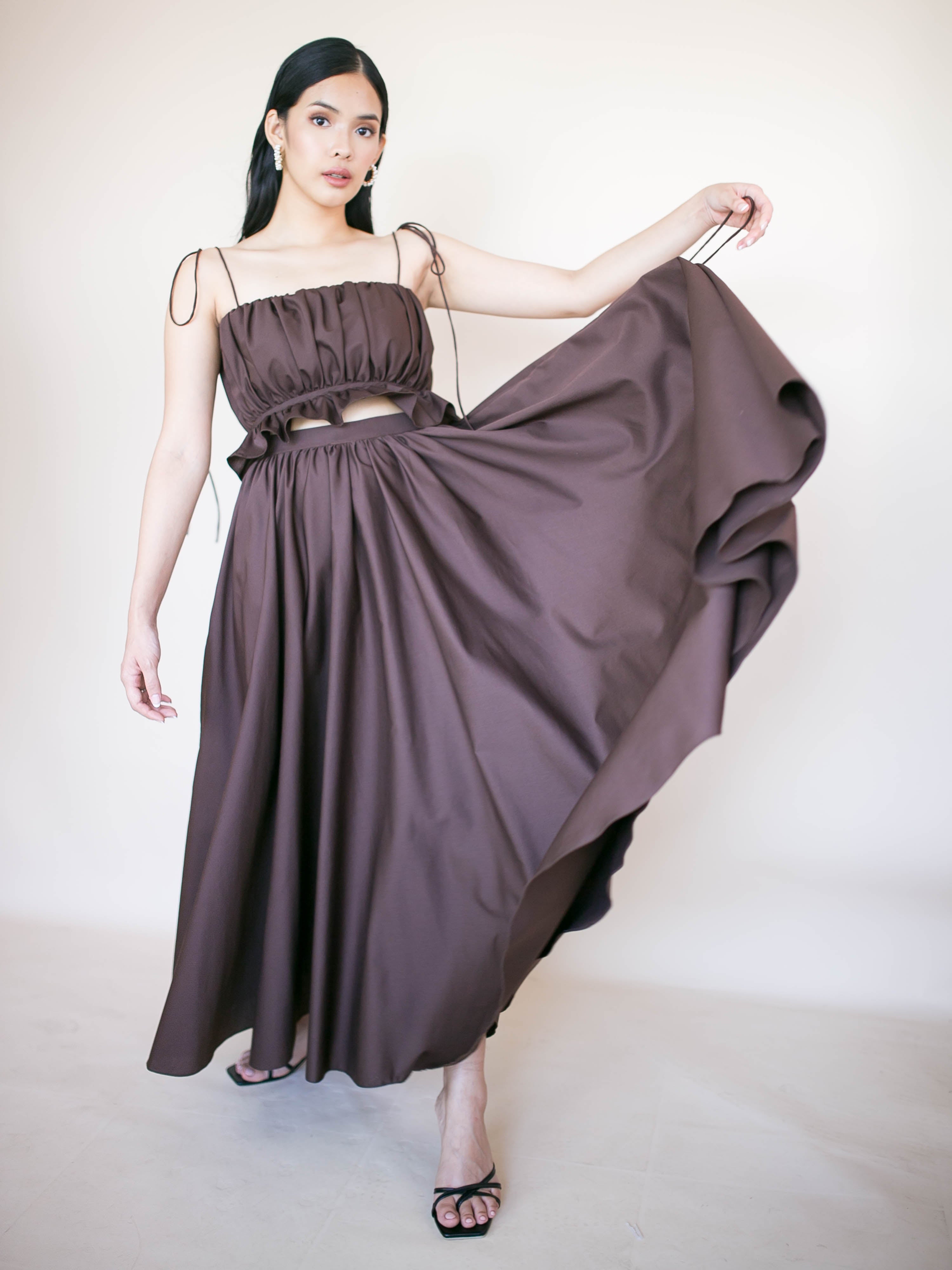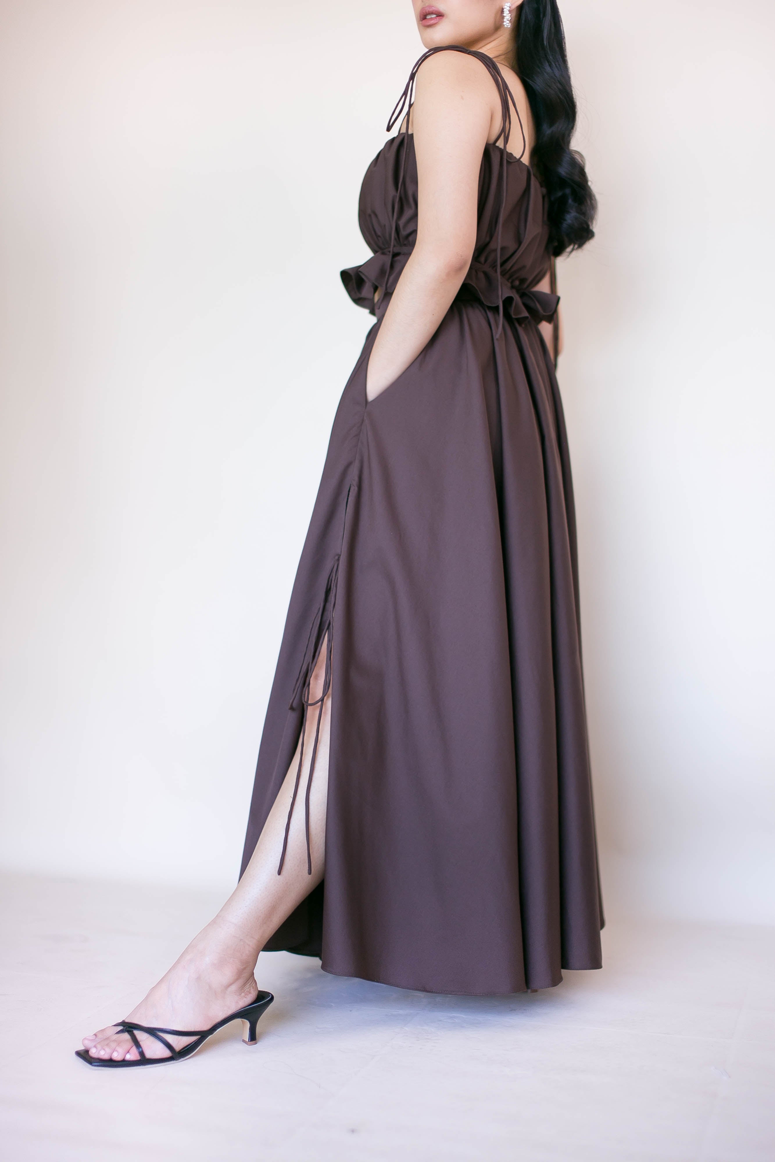 Just a simple and elegant biased midi skirt with side slit and ribbon details that you can use everyday or on special occasions. Made with cotton material and invisible zipper closure.