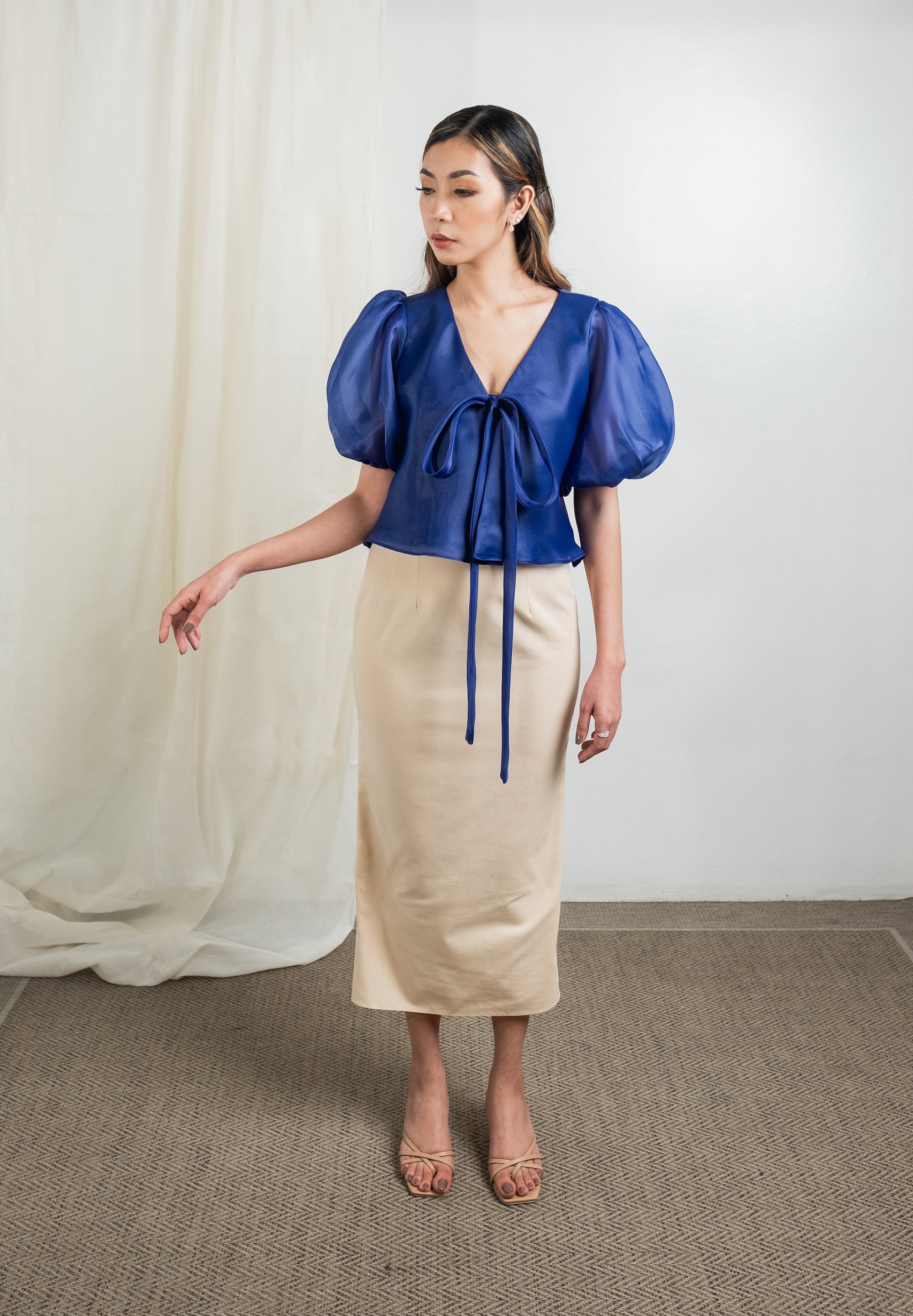 This is our Morning top edited to better suit more special occasions like the holiday season with a puffier sleeves, longer length and a pretty bow closure. Made with fully lined jusi material. Best paired with our Odette skirt.