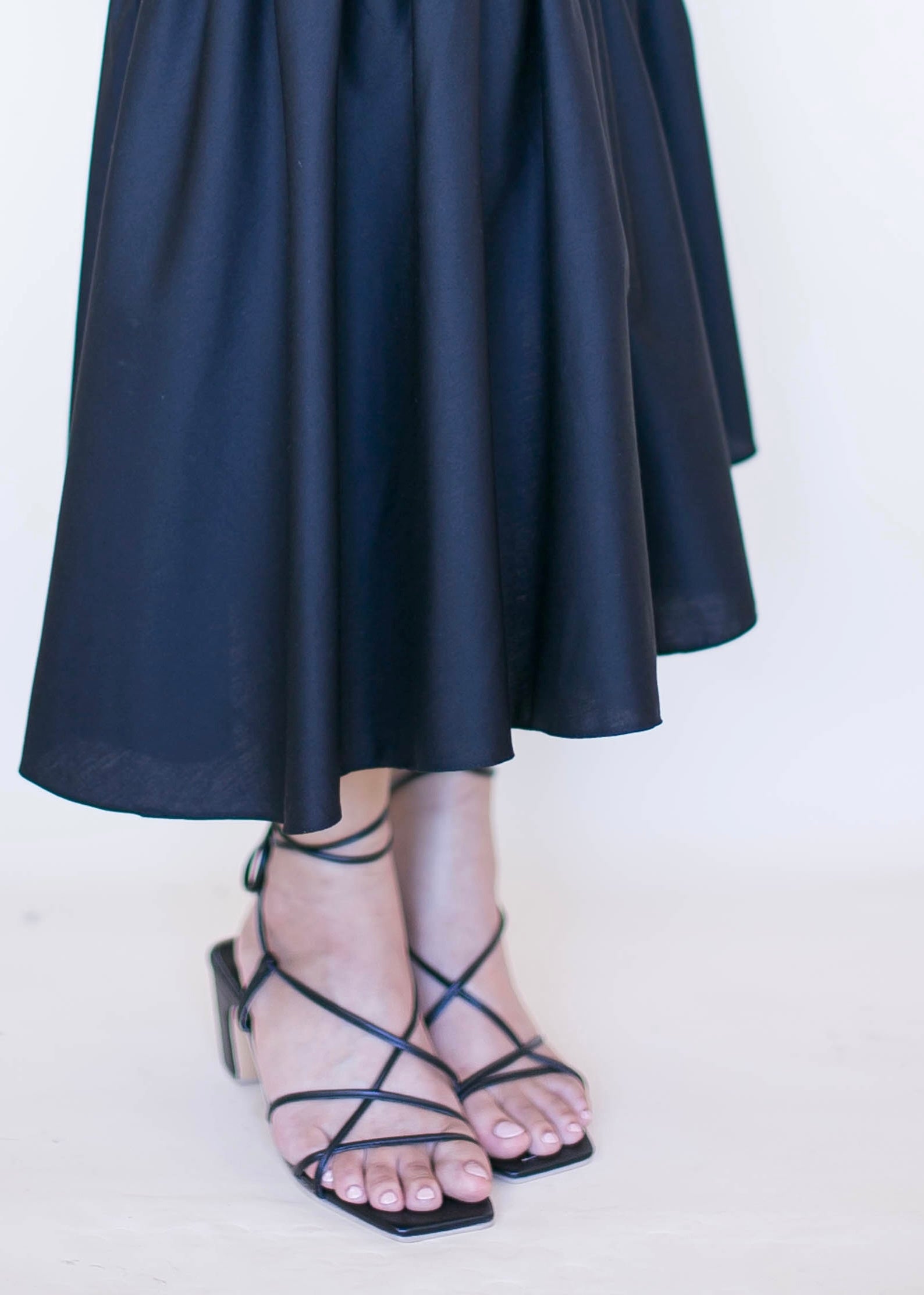 Designed for a day to night affair with charm and comfort in mind. Made with soft buttery leather and blocked heels that's comfortable to wear. Features the sexy slim straps that you can style with anything you want.